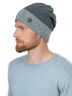 Мужская шапка из полушерстяной двухцветной пряжи с закрепкой сзади. Закрепка оформлена кожаным хлястиком с металлической застежкой. Флисовая подкладка делает изделие комфортным в носке. Шапка сбоку украшена фирменной шильдой из кожи.