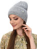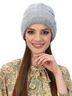 Женская теплая шапка с отворотом, с флисовой подкладкой. Шапка выполнена из шерстяной пряжи с добавлением люрексовой нити. Сбоку шапка украшена металлической брошью с жемчужной бусиной и стразами.