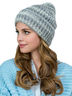 Женская шапка с отворотом и флисовой подкладкой. Шапка выполнена из шерстяной пряжи с добавлением люрексовой нити.