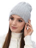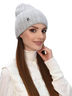 Женская одинарная шапка с широким отворотом. Шапка выполнена из пряжи с большим содержанием ангоры. Сбоку отворот украшен фирменной металлической шильдой.