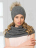 Женская двойная шапка из шерстяной пряжи с натуральным помпоном. Помпон съемный. Выполнено изделие в ажурной вязке . Сбоку шапка украшена фирменной шильдой.