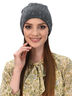 Женская шапка-бандана c внутренним отворотом. Шапка выполнена из пряжи с большим содержанием шерсти. Шапка украшена россыпью страз. Складки сзади придают дополнительный объем.