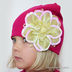 Облегающая шапочка для маленькой модницы украшена крупным контрастным цветком с пайетками.