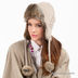 Оригинальная шапка на завязках из трикотажной ткани средней плотности с флисовой подкладкой. Отделана мехом кролика. Стильный аксессуар для прохладной погоды.