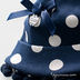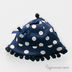 Шапочка для девочки, синяя в горошек. Выполнена из зимнего трикотажа: с внутренней стороны очень мягкий и ворсистый, с верхней более плотный и гладкий. По краю шапочки и на макушке маленькие бумбончики.