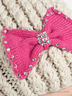 Стильная шапка выполнена из вязаного фактурного материала. Декорирована большим помпоном. Спереди украшена аппликацией в виде банта со стразами. Яркий вариант на каждый день!