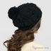 Теплая и мягкая шапка из вязаного полотна декорирована пушистым помпоном, аппликацией и разнообразной вязкой. Подходит для романтичных и утонченных особ, привыкших одеваться с лоском.