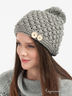 Нежная теплая шапка из шерстяного полотна с объемной фактурной вязкой. Украшена большим помпоном. Изделие дополнено декоративными деревянными пуговицами. Прекрасно согреет и дополнит Ваш зимний образ!