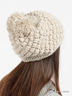 Нежная теплая шапка из шерстяного полотна с объемной фактурной вязкой. Украшена большим помпоном. Изделие дополнено декоративными деревянными пуговицами. Прекрасно согреет и дополнит Ваш зимний образ!