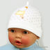 Трикотажная шапочка с декоративным узелком, украшенная аппликацией.