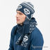Стильная шапка из плотного трикотажа крупной вязки. Декорирована оригинальным узором и завязками. Отличный молодежный аксессуар для прохладной погоды.