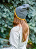 Женская шапка-чулок однотонная, с контрастной, слегка закругленной окантовкой, имеет простую вязку. Шапочка мягкая и приятная к телу, не колется и хорошо облегает голову. Это прекрасный повседневный вариант для молодых девушек и не только, шапка хорошо завершит стильный и яркий образ.