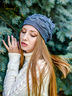 Милая женская шапка со складками и узорами, внутри надежная и теплая подкладка. Шапочка красиво дополнит образ женщины или девушки и защитит от холодной погоды.