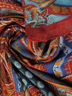 Шарф из высококачественной вискозы, принт - на бордово-кирпичном фоне разноцветный восточный орнамент . Обработка края - машинная строчка и короткая бахрома.
