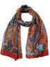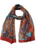 Шарф из высококачественной вискозы, принт - на бордово-кирпичном фоне разноцветный восточный орнамент . Обработка края - машинная строчка и короткая бахрома.