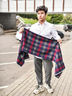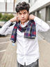 Шарф Venera мужской двухсторонний из вискозы с шерстью серый с синим и бордовым. Длинные края обработаны машинной строчкой - оверлок, по коротким - бахрома в 1 см. Принт шарфа клетка. Размер: 45х180 см.