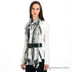 Оригинальный шарф из тонкого эластичного материала. Декорирован принтом и оригинальными разрезами.