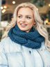Шарф-снуд выполнен крупной узорной вязкой с нитью люрекса.