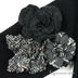 Шерстяной шарф украшен пришитыми декоративными элементами.
