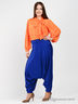 Стильные шаровары из плотного слабоэластичного трикотажа. Широкий отрезной пояс. Длинные брючины. Сильно опущенная линия проймы. Манжеты брючин дополнены резинкой.