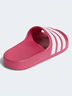 Детские шлепанцы в лучших традициях adidas. Цельный литой верх и три полоски на ремешке. Подходят для душа и пляжа. Мягчайшая стелька выполнена из быстросохнущего материала, который приятно пружинит и дарит комфорт.