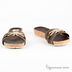 Легкие повседневные шлепанцы. Подошва с высокой протекцией, кожаная стелька, нубуковая вставка, верхняя часть декорирована клепками и льняной веревочкой.
