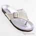 Стильные шлепанцы для женщин выполнены на пробковой основе. Золотистая стелька прекрасно сочетается с коричневой кожей и металлической пряжкой. Подошва резиновая.