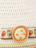 Стильная шапочка бежевая с разноцветными полосками по низу изделия и декорированная цветком сбоку. Отличный вариант на каждый день для Вашей малышки.
