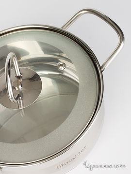 SHNAIDER, заботясь о своих покупателях, разработали и изготовили крышки таким образом, что они в процессе приготовления пищи плотно прилегают к верхней кромке изделия, а ручки при этом не нагреваются и остаются холодными. Сквозной профиль ручек позволяет более уверено держать посуду и переносить ее без прихваток. Крышки кастрюль оснащены таким необходимым устройством, как термодатчик, с помощью которого Вы можете следить за процессом приготовления пищи, не поднимая крышки. Эту посуду можно использовать практически на любой из существующих газовых и электрических плит, а также ее можно мыть в посудомоечных аппаратах.