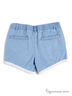 Стильные лёгкие шорты для яркого лета. Застежка на молнию и клёпку. Модель имеет шлевки на поясе для ремня и втачные карманы по бокам и сзади. Низ изделия декорирована контрастной полосой.