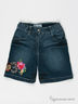 Модные шорты из хлопкового денима со шлевками для ремня. Застежка на пуговицу и молнию. Два прорезных кармана спереди, два накладных с клапанами сзади. Модель декорирована эффектной объемной вышивкой и аппликацией со стразами и бисером. Отличная модель на каждый день!