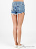 Замечательные джинсовые шорты с застежкой на молнию и пуговицу. Спереди два втачных кармана, сзади - два накладных. Шорты декорированы металлическими клепками и потертостями. Отличный вариант на каждый день.
