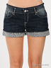 Детали: застежка на молнию и пуговицу, к поясу пришиты шлевки, три передних кармана, три задних кармана, декоративные отвороты, эффект потертости