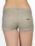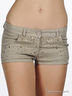 Шорты прямого кроя. Втачные карманы спереди, накладные сзади. Шорты застегиваются на молнию и пуговицу. Изделие декорировано стразами.