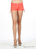 Шорты прямого кроя. Втачные карманы спереди, накладные сзади. Шорты застегиваются на молнию и пуговицу. По бокам изделия декоративная шнуровка.