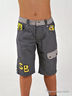 Модель прямого кроя застегивается на кнопку и молнию. К поясу пришиты шлевки. Множество карманов. Декоративные нашивки и аппликации.