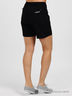 Спортивные шорты из тонкой эластичной ткани. Дополнены съемной внутренней частью с поролоновой ластовицей. Отрезной пояс со шлевками, застежка на молнию и кнопку, два прорезных кармана сзади. Для леди, ведущих активный образ жизни.