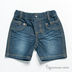 Модель прямого кроя. Имитация застежки на пуговицу и молнию. В пояс вшита резинка, пришиты шлевки. Два передних кармана, два задних кармана.