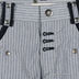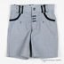 Детали: застежка на кнопку и молнию, к поясу пришиты шлевки для ремня, спереди два втачных кармана, сзади имитация карманов