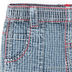 Детали: спереди 4 втачных кармана, сзади 2 накладных, в поясе вставка из эластичной резинки, к поясу пришиты шлевки для ремня, изделие декорировано контрастной прострочкой