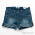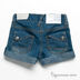 Короткие джинсовые шортики с отворотами для девочки. Есть шлевки для ремня. Застегиваются на молнию и пуговицу. Четыре кармана.