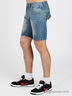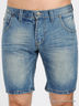 Детали: втачной пояс и шлевки для ремня, пять карманов, застежка на молнии и на пуговице, шорты вытерты с небольшими рваностями.