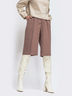Стильные бермуды из костюмной ткани. Модель застёгивается на молнию и крючок спереди. Для комфортности в носке, предусмотрены боковые карманы.