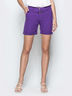 Яркие шорты из плотной костюмной ткани с карманами в швах. Застегиваются на две пуговицы и молнию. Съемный пояс в комплекте.