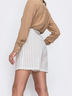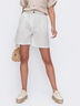 Льняные шорты в полоску с завышенной талией и вместительными карманами. По бокам пояс присобран на резинку. Застегиваются на молнию и пуговицу.