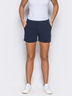Стильные короткие шорты. Для удобства спереди предусмотрены карманы, сзади обманки. Застегиваются на молнию и 2 пуговицы. Изюминка модели – кожаная отделка на карманах.