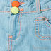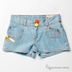Модель прямого кроя застегивается на две пуговицы и молнию. К поясу пришиты петли для ремня. Три передних кармашка, два задних кармашка. Контрастная прострочка. Декоративные нашивки и вышивка.