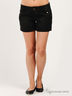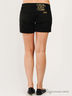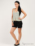 Детали: отрезной пояс со шлевками для ремня, застежка на пуговицу и молнию, два прорезных кармана спереди, два прорезных в рамках сзади, шорты с простроченными отворотами.