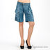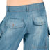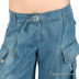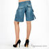 Шорты необычного кроя. 2 накладных кармана спереди, застежка клапан, 2 таких же кармана сбоку. Низ декорирован ремешками, регулирующимися по длине. Брюки застегиваются на молнию и пуговицу, имитация ремня.