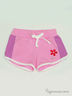 Симпатичные короткие шортики с контрастными вставками, пояс регулируется шнурком. Модель декорирована принтом цветочком и стразами.